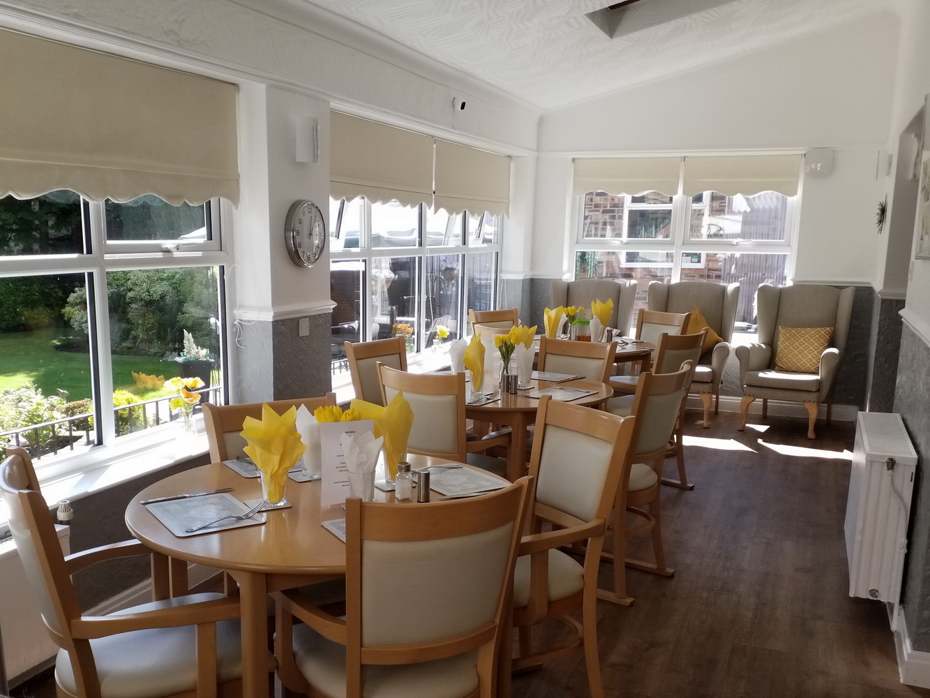 Our dining room is bright and airy with round tables to encourage socialising and there are two lounges for chatting, reading or watching TV.