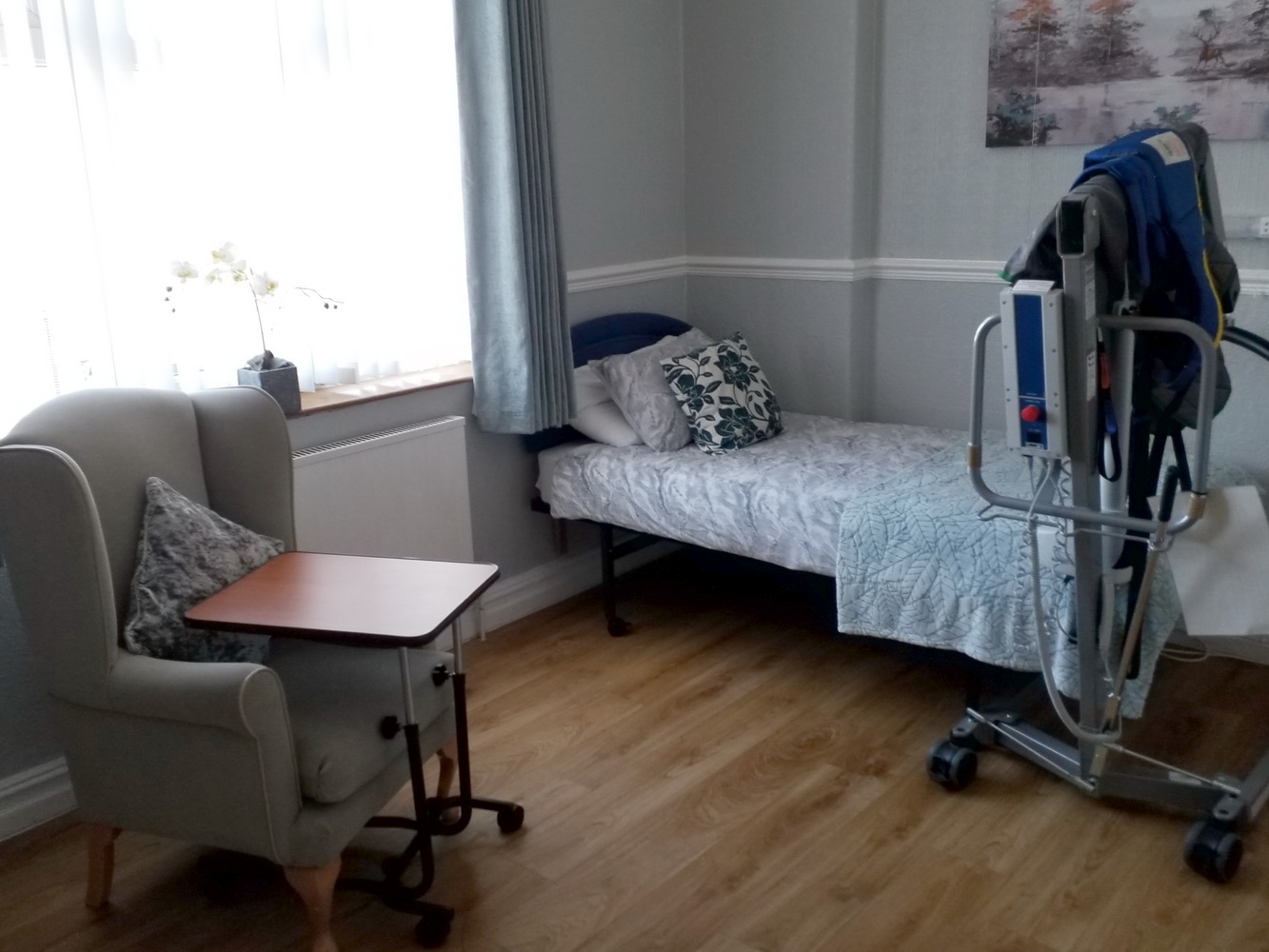 For safety and security there are bed-head mounted wall lights and a 24 hour wire-free nurse/assistance calling system.
